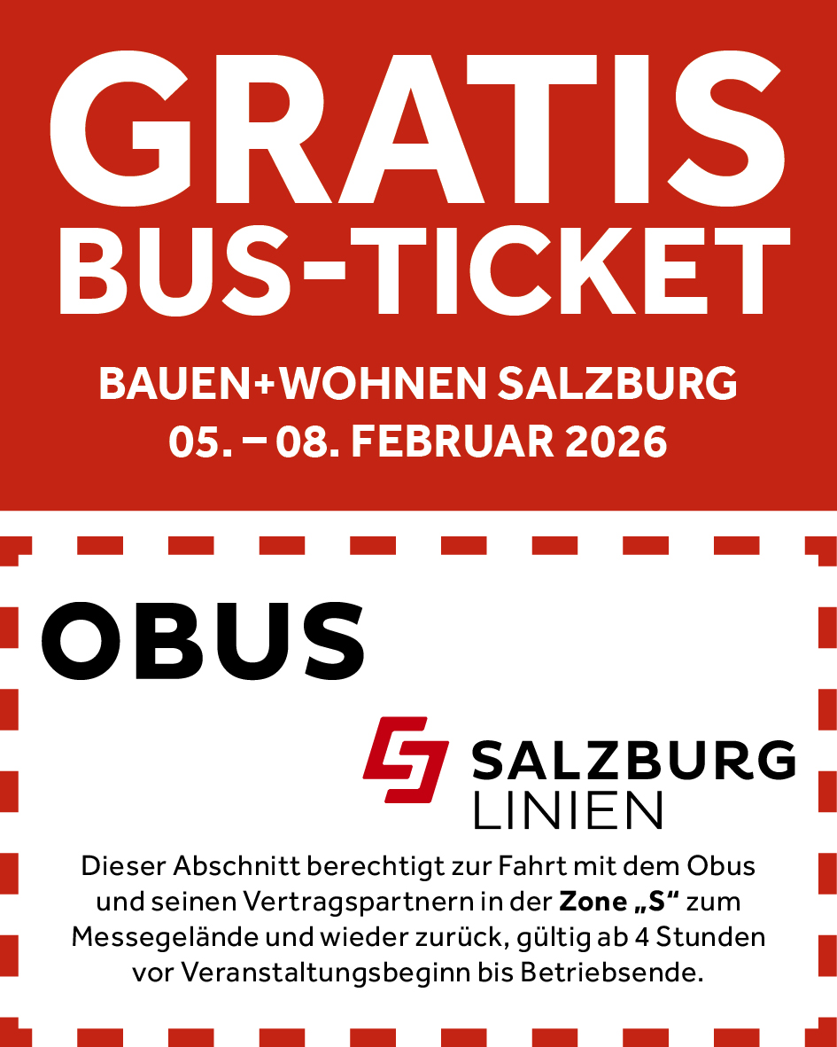 Ihr Tagesticket berechtigt zur gratis Anreise mit dem Salzburger Obus zum Messezentrum Salzburg.