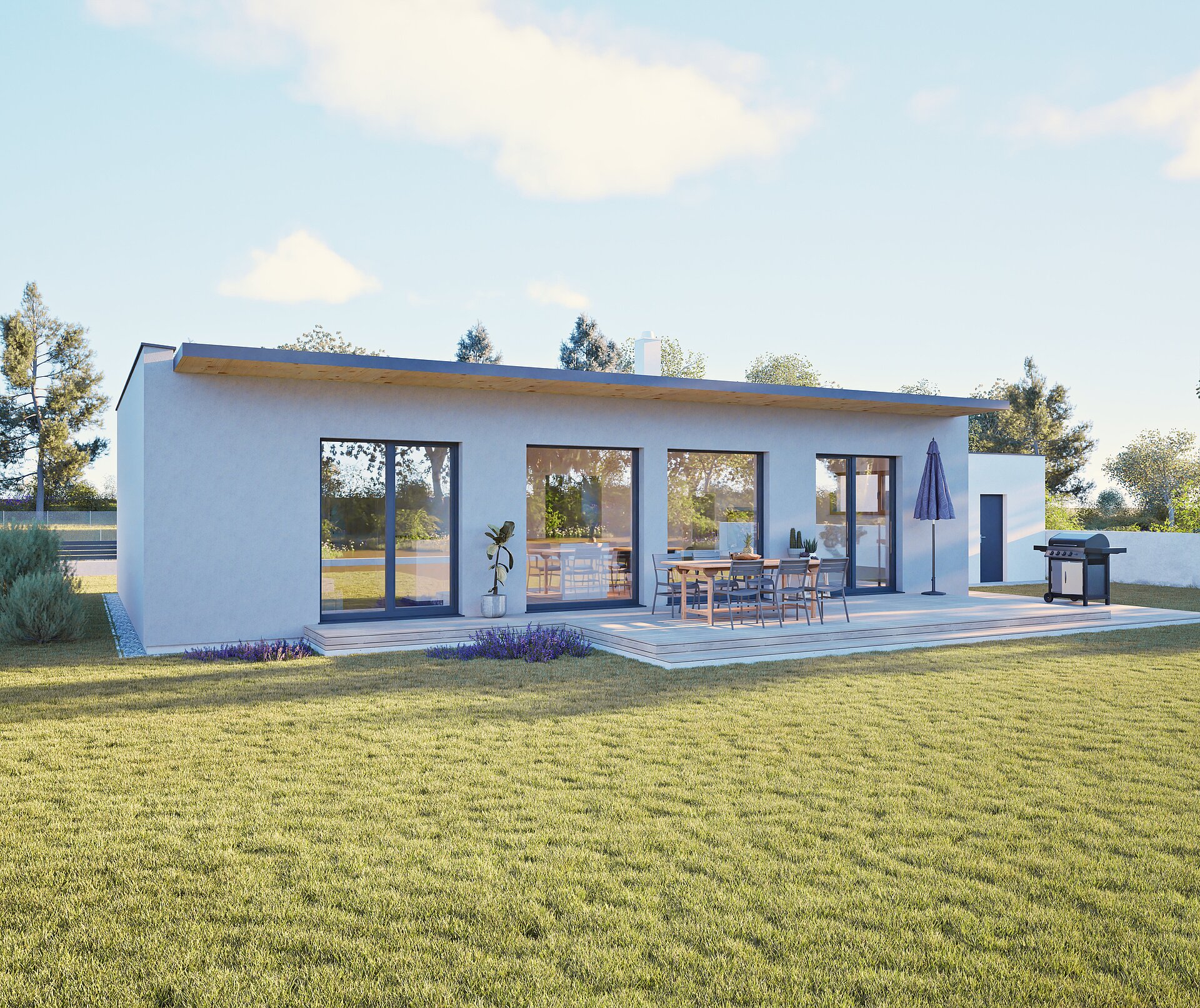 vom Bungalow über Einfamilien‑ bis hin zu individuellen Wohnhäusern – und produziert alle Bauteile zu 100 % in Österreich im eigenen Werk inklusive Tischlerei.